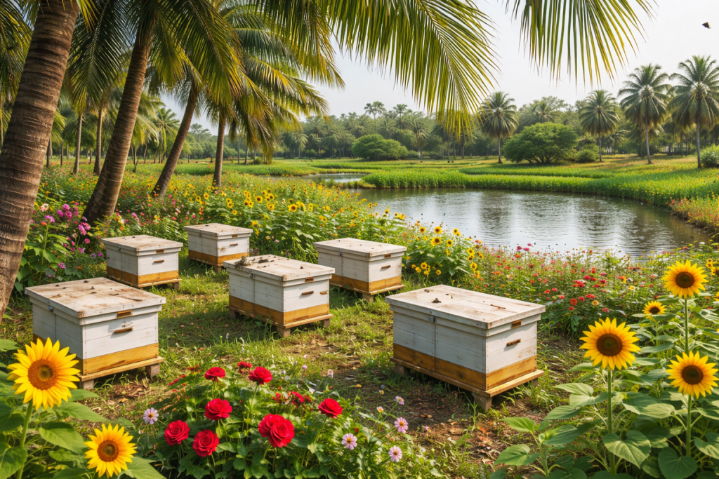 We do apiculture by maintaining healthy bee colonies for natural honey production and pollination support by using sustainable and eco-friendly methods,.