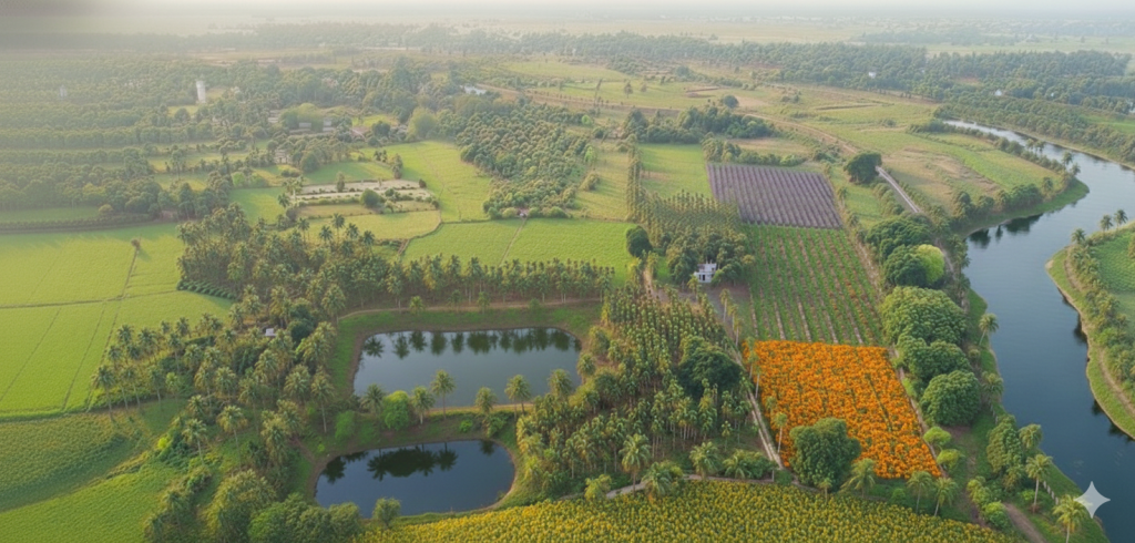 The farmhouse serves as the heart of Denua Farm NGO, connecting our initiatives in fish farming, medicinal plants, flower cultivation, and community development.